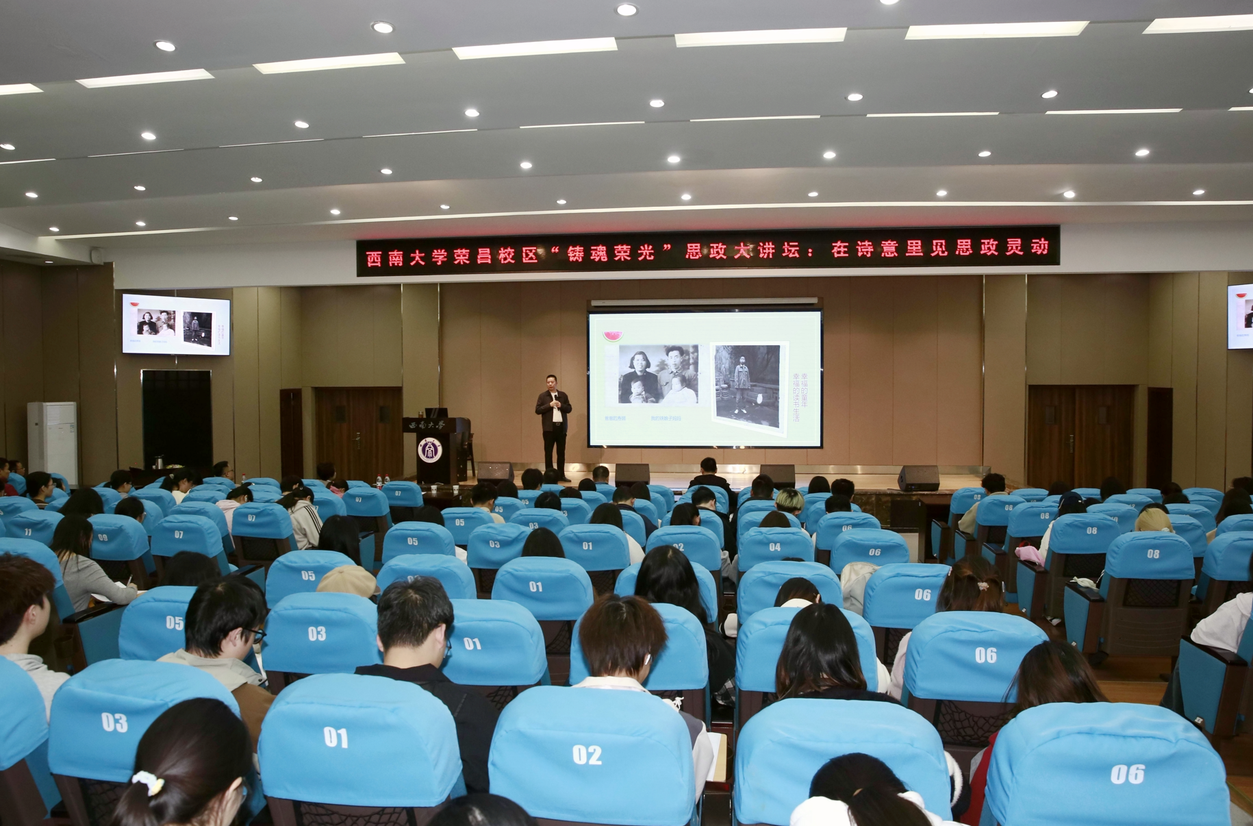 10月31日下午,西南大学荣昌校区“铸魂荣光”思政大讲坛特邀著名诗人刘邦祥老师到校开展“诗意里见思政灵动”专题报告,200余名师生参加报告,荣昌校区党工委副书记、纪工委书记穆奎主持报告。