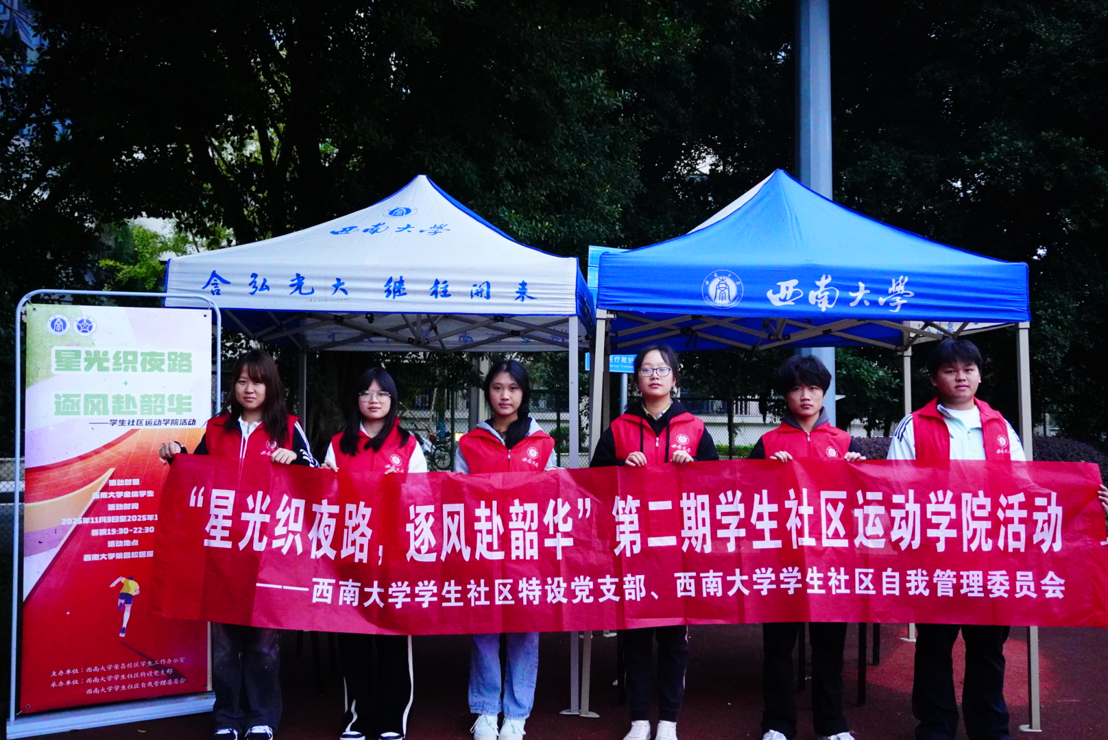 为推进“一站式”学生社区建设,营造安全、文明、健康、积极向上的社区氛围,促进学生德智体美劳全面发展。11月3日至9日,由西南大学党委学生工作部和荣昌校区党工委、管委会主办,学生社区特设党支部与学生社区自我管理委员会承办的“星光织夜路,逐风赴韶华”第二期学生社区星光夜跑活动顺利举行并圆满收官。