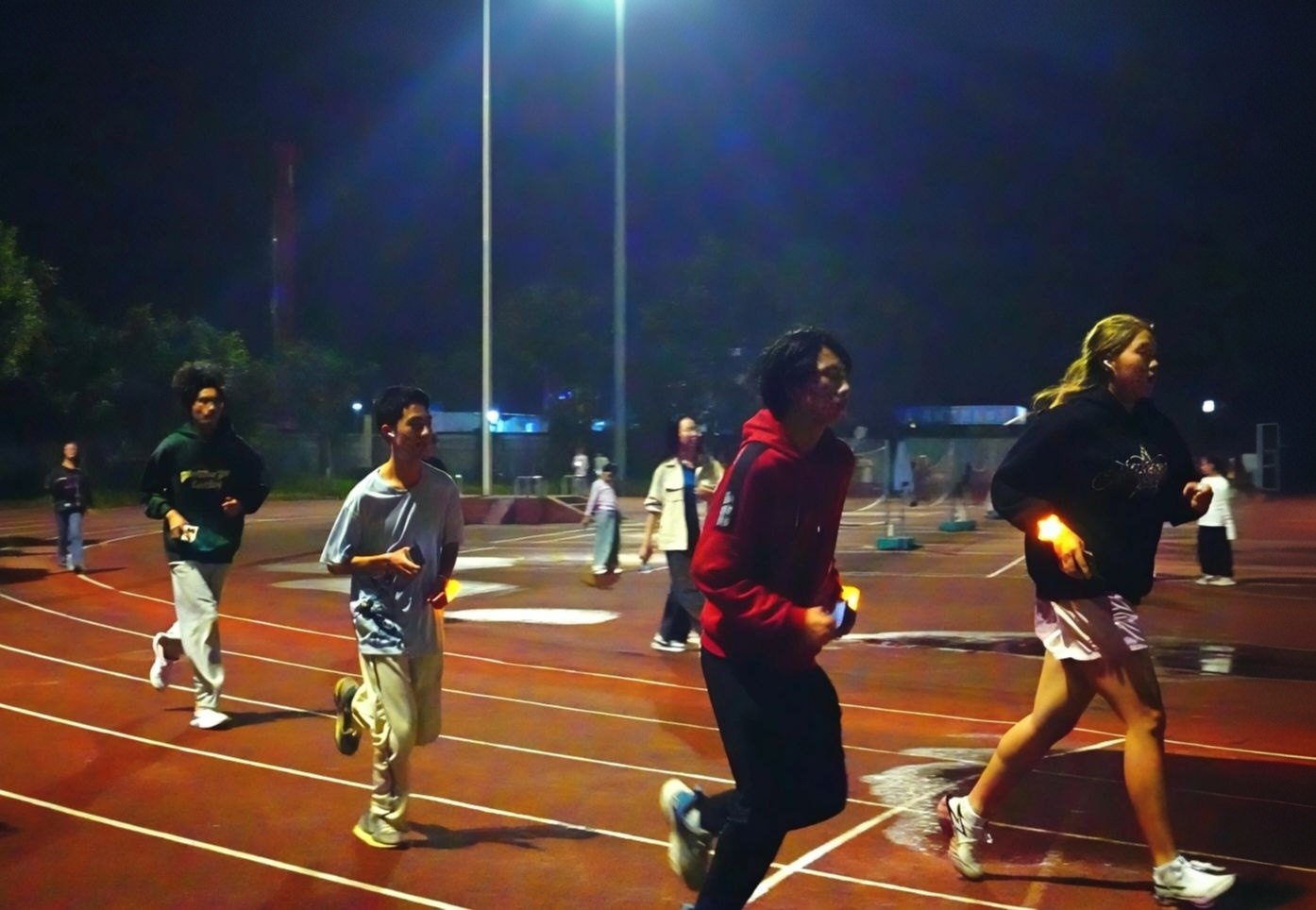 此次活动分为三个环节,周内开展日常夜跑打卡,鼓励同学们在奔跑中释放青春活力;周六晚举办音乐路演,以动人旋律点燃运动热情,脚步声与乐曲共同谱写出青春的节奏;周日则组织自由组队接力跑,突出团队协作,在接棒传递中凝聚集体力量。活动全程在夜色中有序进行,同学们热情参与、坚持不懈,不仅在个人挑战中突破自我,更在团队协作中展现出良好的精神风貌,为校园夜晚注入一道道跃动的青春光彩。