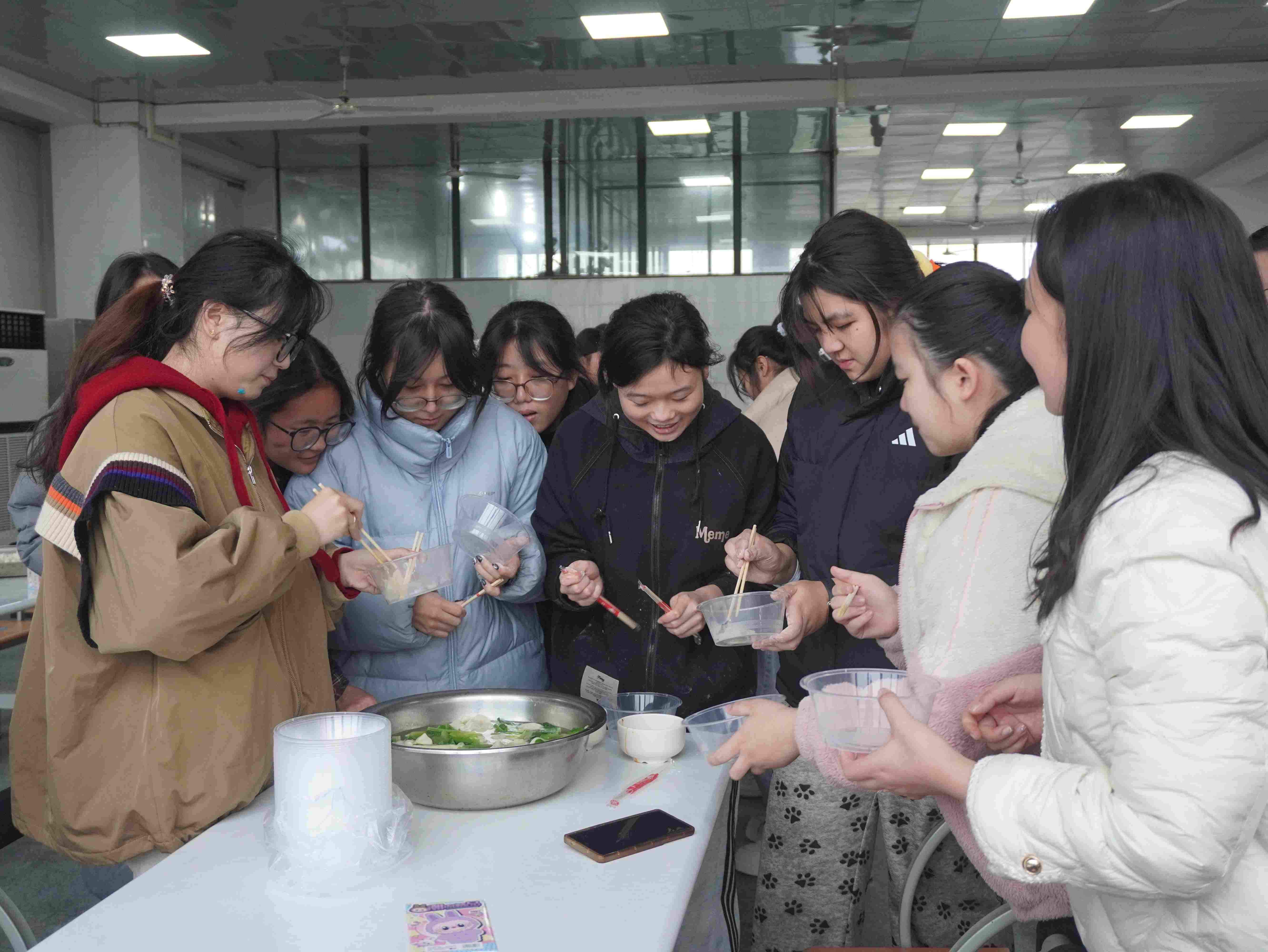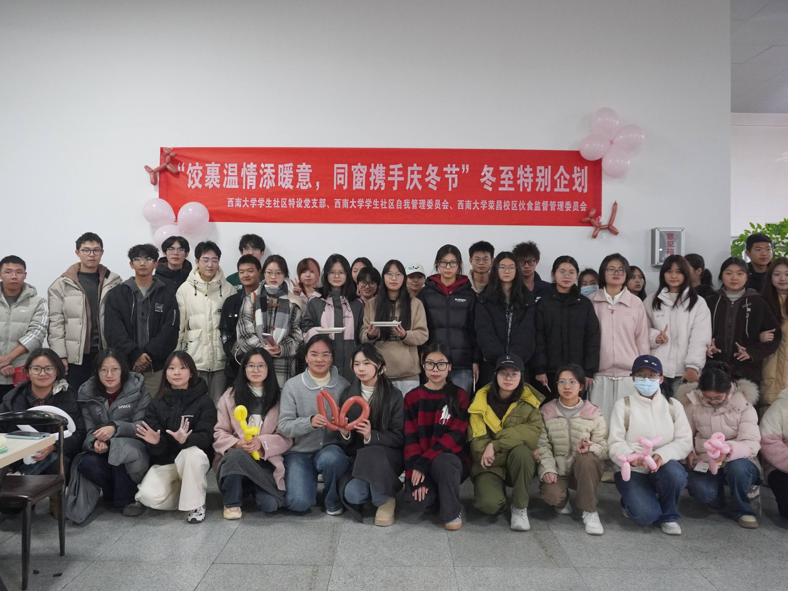 为弘扬中华优秀传统文化,促进中外学生互动融合,丰富园区育人实践内容,12月14日,由西南大学荣昌校区党工委管委会、后勤集团联合主办,学生工作办公室、后勤集团荣昌服务中心、学生社区特设党支部联合承办的“饺裹温情添暖意,中外同窗共庆冬”冬至主题文化活动在校区教职工食堂三楼顺利举行。本次活动吸引了包括在荣学院外国留学生在内的众多同学积极参与,展现出学生社区开放包容、文化共融的育人氛围。