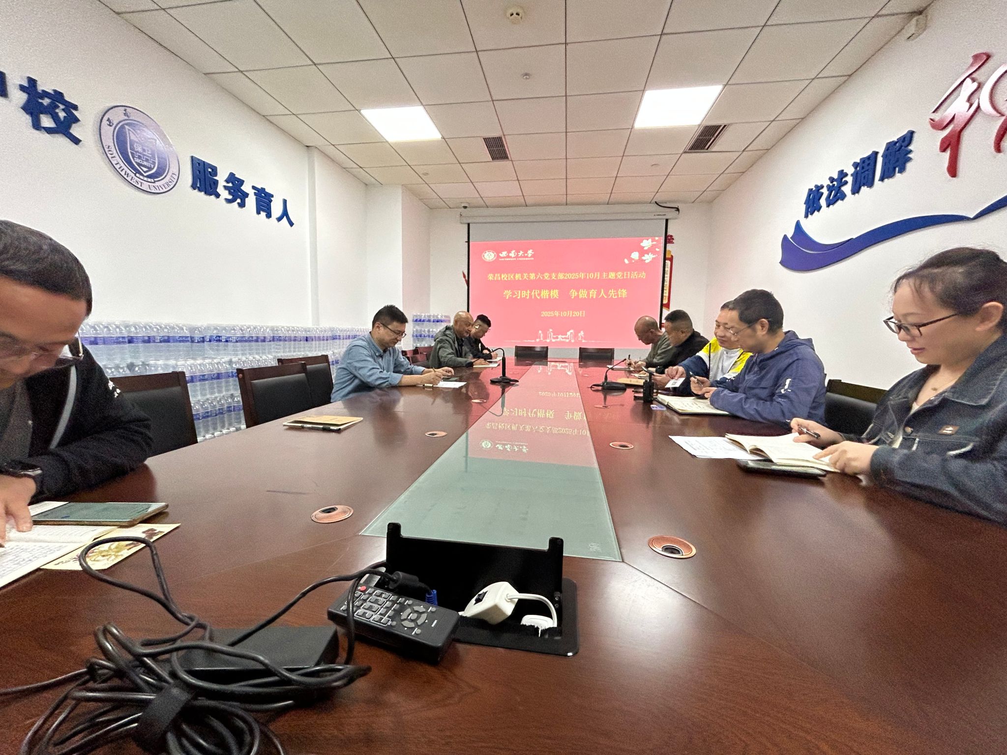 10月20日下午,保卫工作办公室党支部以“学习时代楷模争做育人先锋”为主题组织开展2025年10月主题党日活动,支部全体党员同志参加活动,活动分为集中学习、交流研讨、民主议事三个部分。