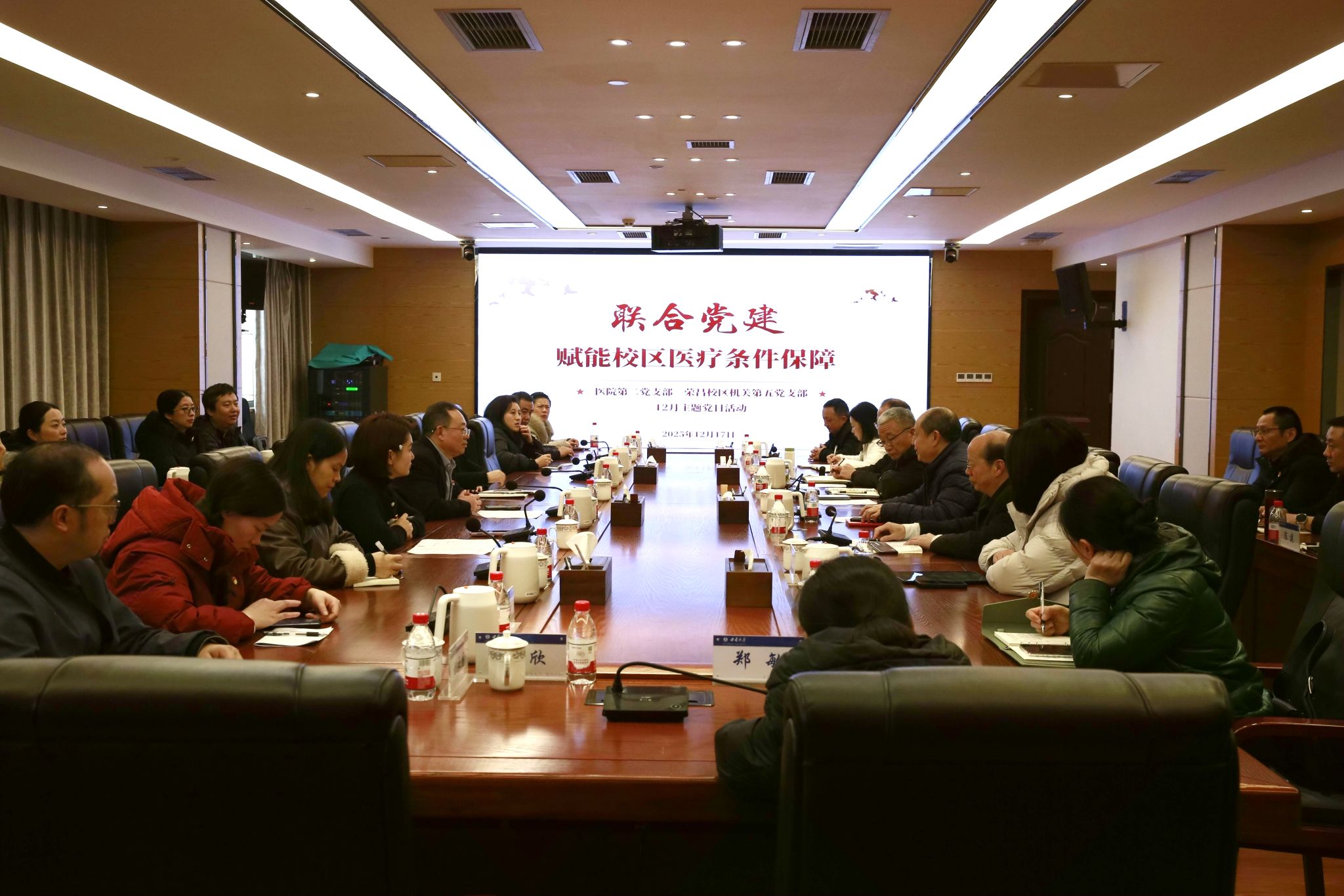 为强化党建引领与业务深度融合,12月17日下午,荣昌校区机关第五党支部联合学校医院第二党支部开展12月主题党日活动,针对如何更好满足师生医疗健康需求、提升医疗服务水平展开交流探讨。荣昌校区党工委书记、管委会主任周国安,医院党委书记吴宗辉、院长游莉,特邀联系民主党派代表、校区管委会副主任曹烈斌,校区机关第五党支部、医院第二党支部全体党员及医院驻荣工作人员代表参加活动。活动由校区机关第五党支部书记、综合办公室主任杨德生主持。