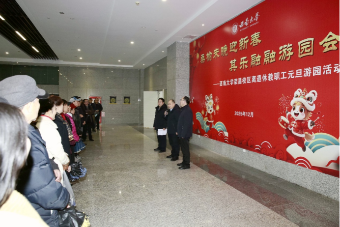 为营造欢乐祥和的节日氛围,丰富离退休教职工精神文化生活,传递校区关怀,12月30日下午,荣昌校区离退休教职工元旦游园活动在第7教学楼B区大厅圆满举办。荣昌校区党工委书记、管委会主任周国安,副处级组织员包尔全出席活动,与老同志们欢聚一堂共迎新年。活动启动仪式由荣昌校区离退休党委书记、离退休工作办公室主任袁朝武主持。