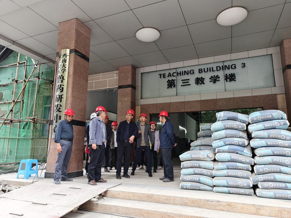 调研团队还前往动物医学院施工现场,实地检查该项目的施工进展。调研组重点了解了施工进度是否符合节点目标、关键部位质量控制措施以及现场安全隐患排查整改情况,要求各参建单位紧盯关键节点,加强协同配合,确保工程稳步推进。