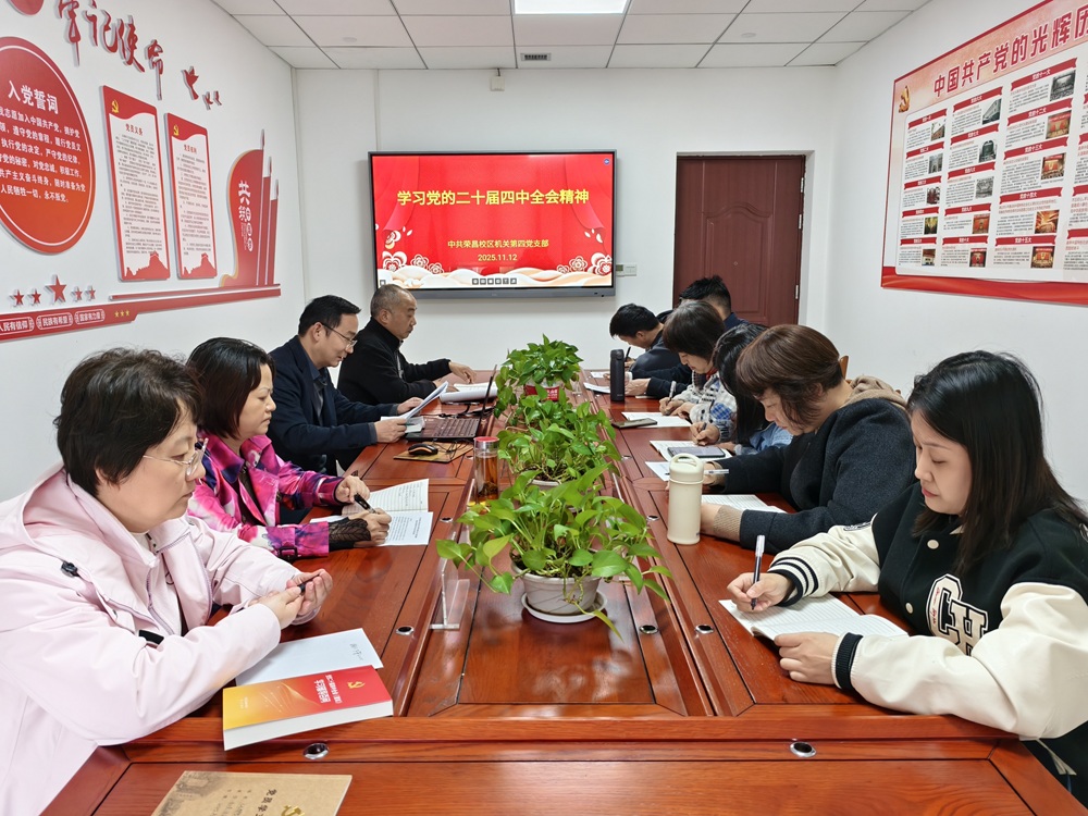 为深入学习贯彻党的二十届四中全会精神,教育引导党员勇于担当、主动作为,11月12日,荣昌校区机关第四党支部开展了“学习党的二十届四中全会精神”11月主题党日活动,支部全体党员参加,会议由支部书记丁恩俊主持。