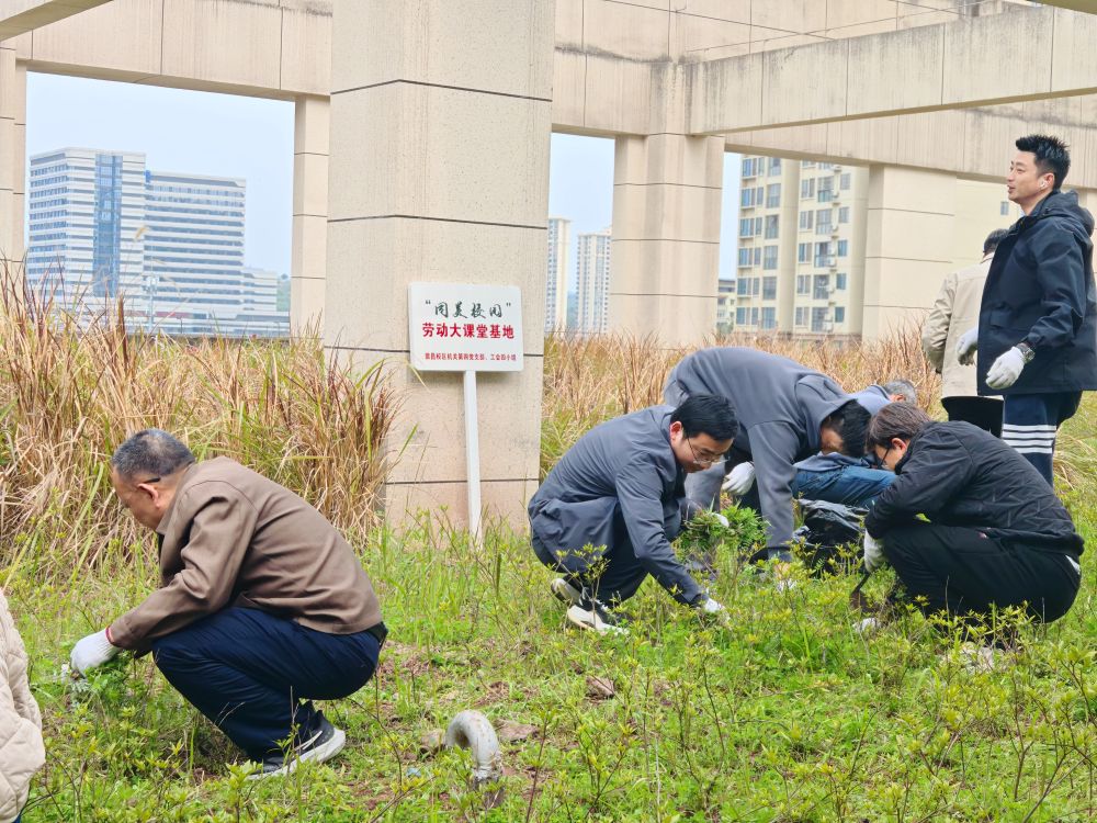 在支部委员与工会小组长的带领下,全体参与人员精神饱满、热情高涨,纷纷带起手套、领取剪刀,迅速投入杂草清除工作,整个活动有序进行、高效顺畅,配合默契。大家边劳动边交流,在杂草清除中弘扬劳动精神,体验劳动乐趣。