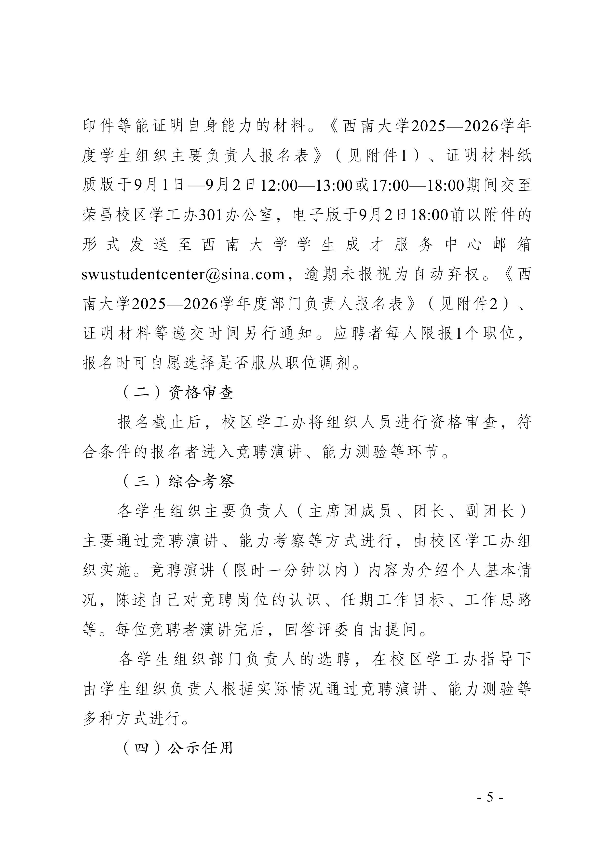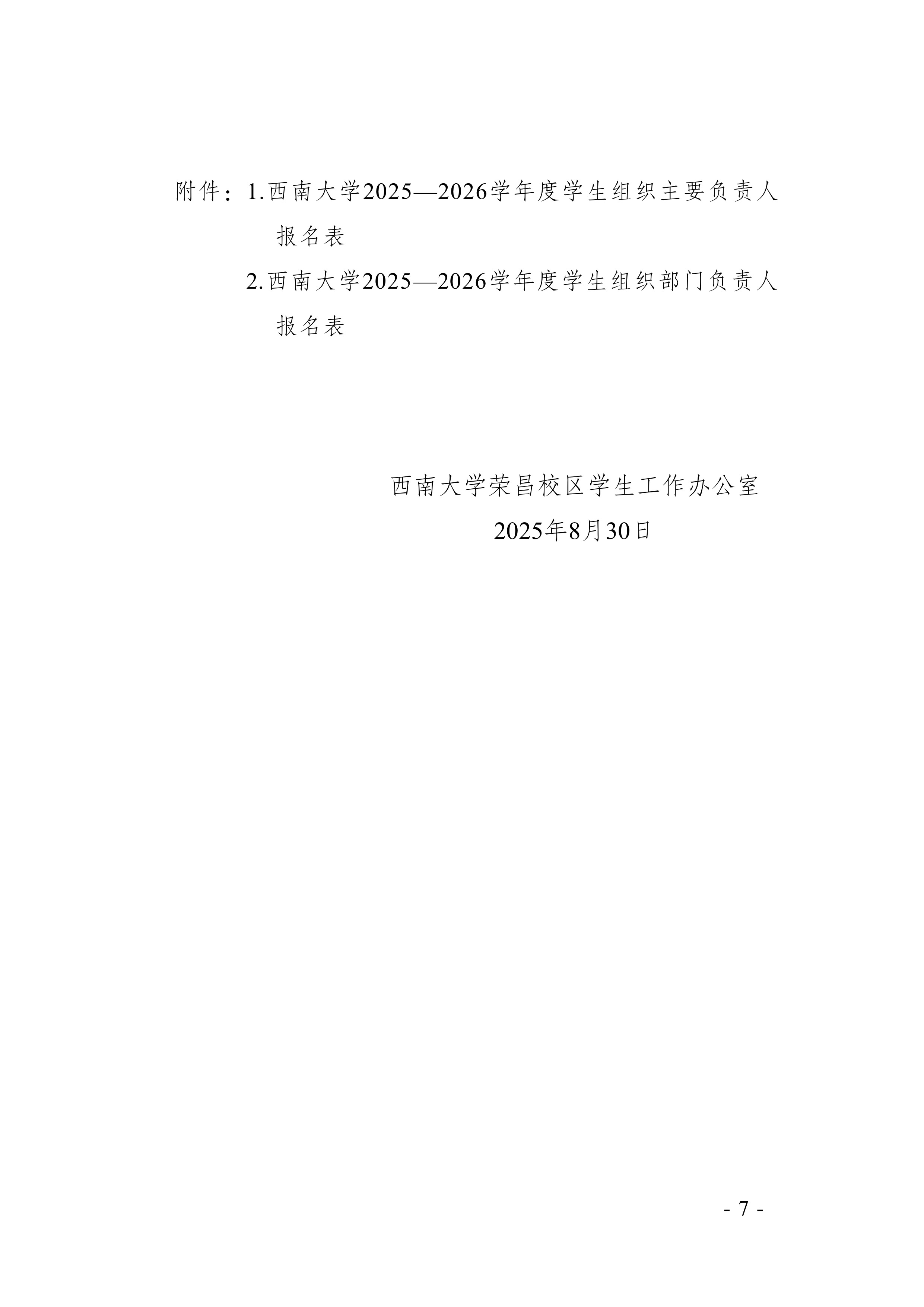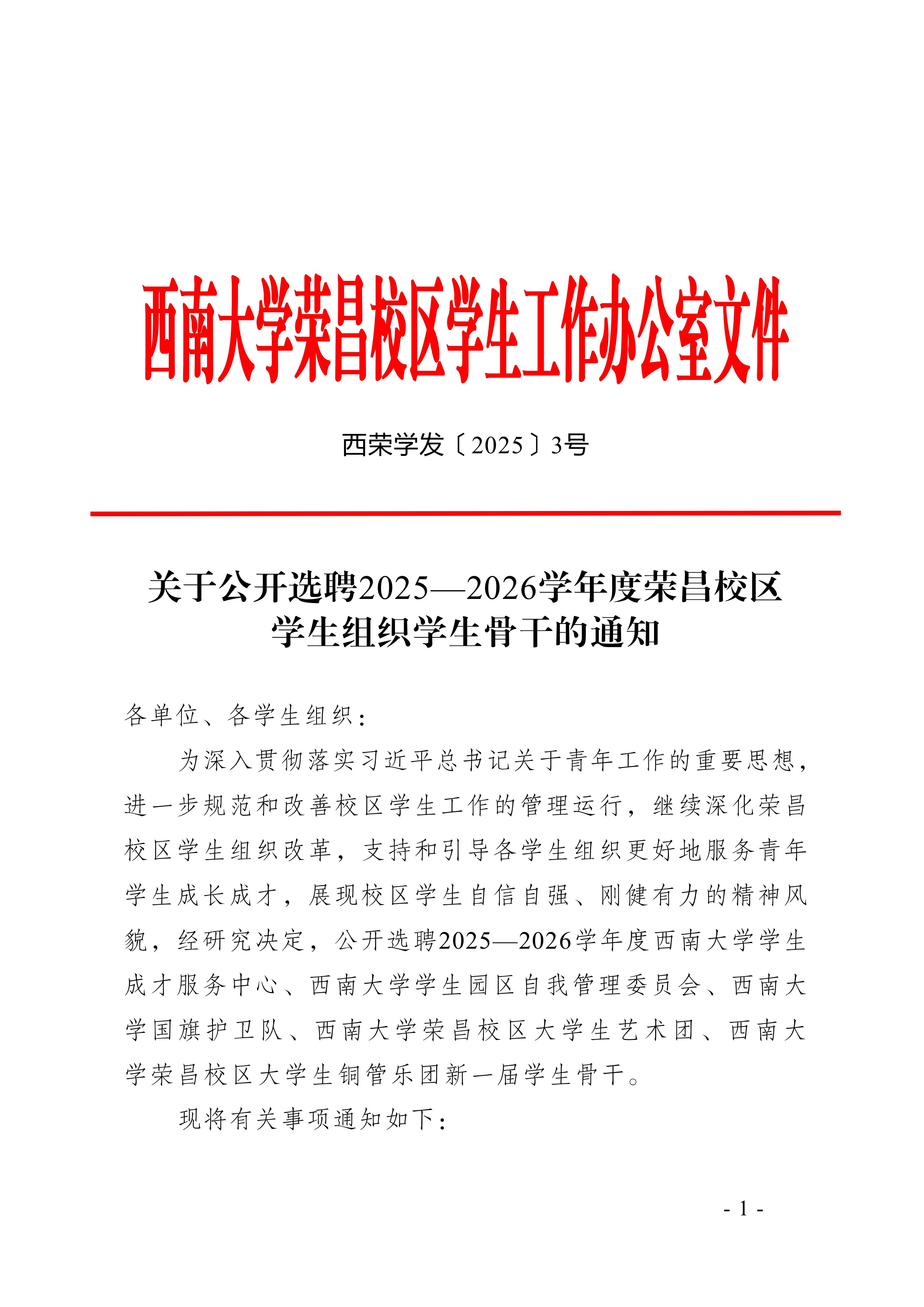 关于公开选聘2025—2026学年度荣昌校区学生组织学生骨干的通知