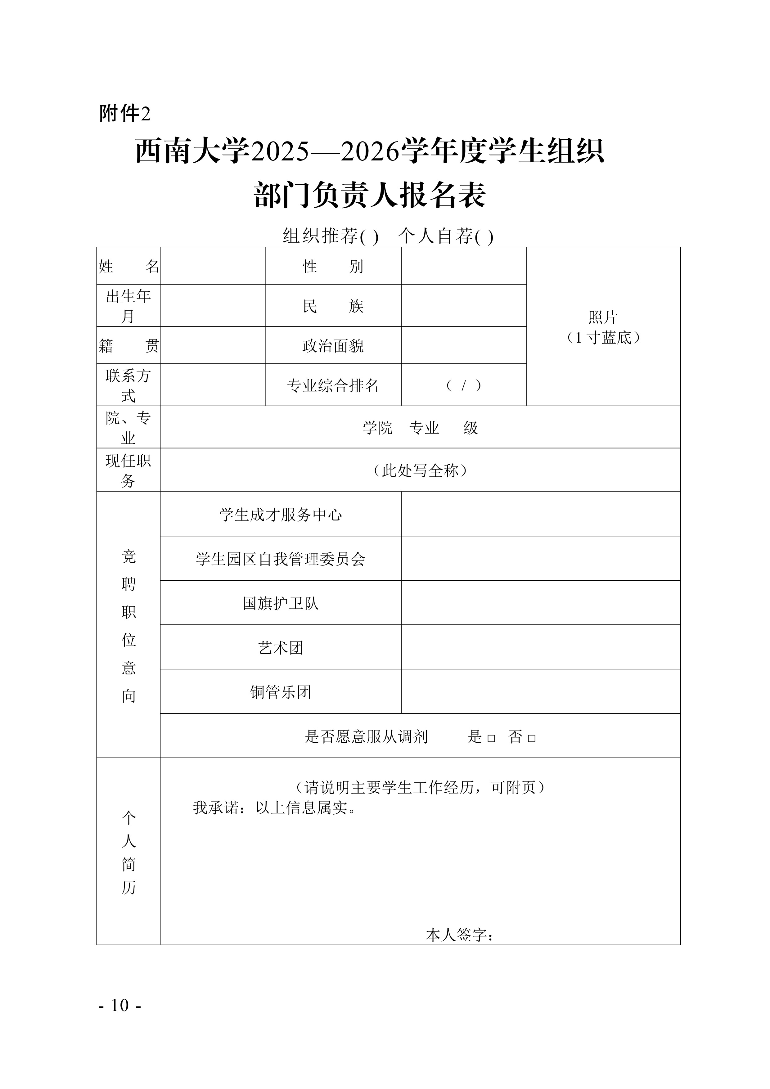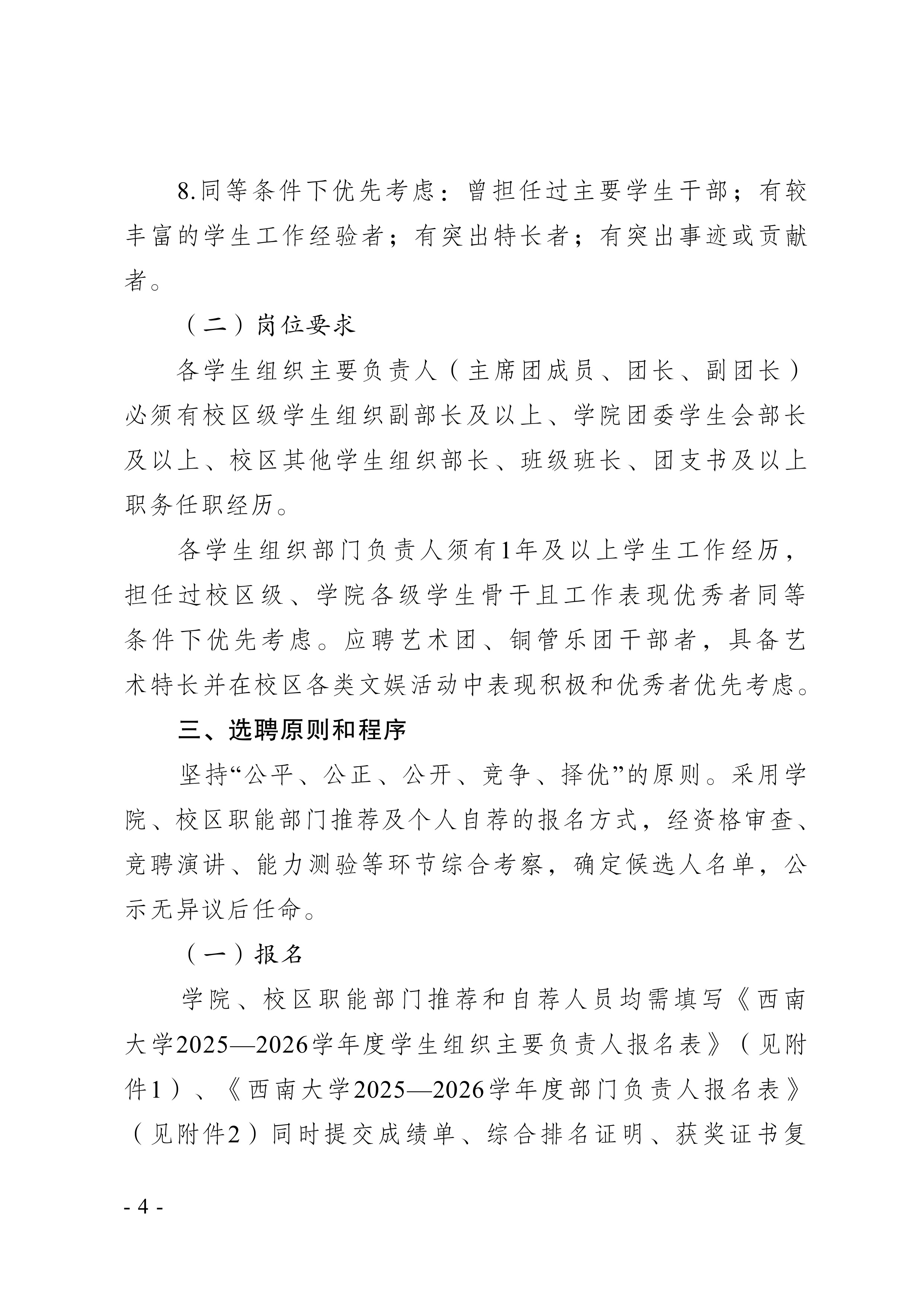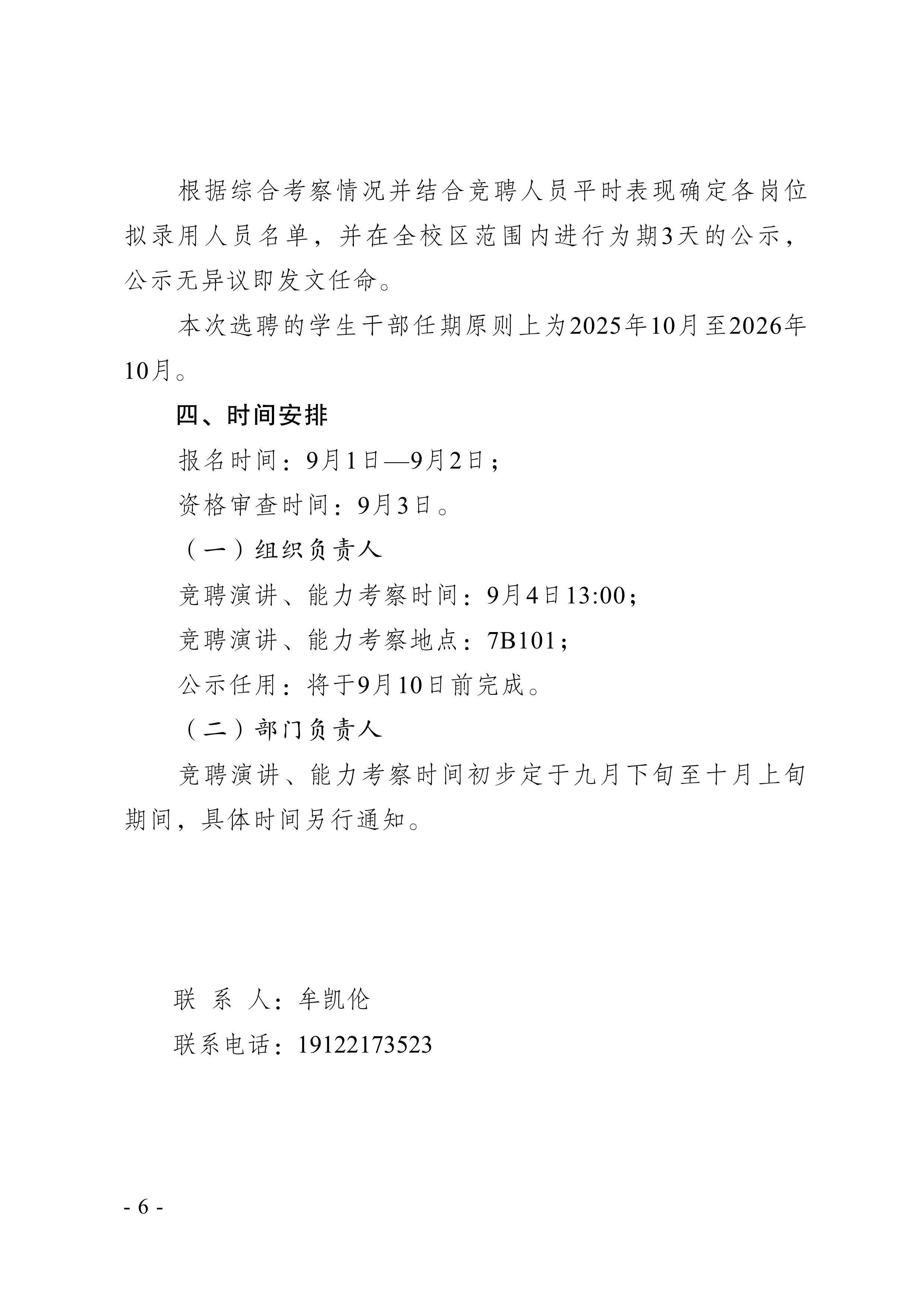 关于公开选聘2025—2026学年度荣昌校区学生组织学生骨干的通知