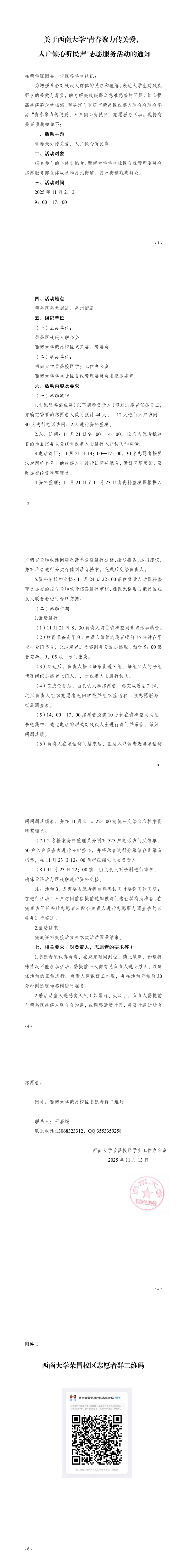 关于西南大学“青春聚力传关爱,入户倾心听民声”志愿服务活动的通知
