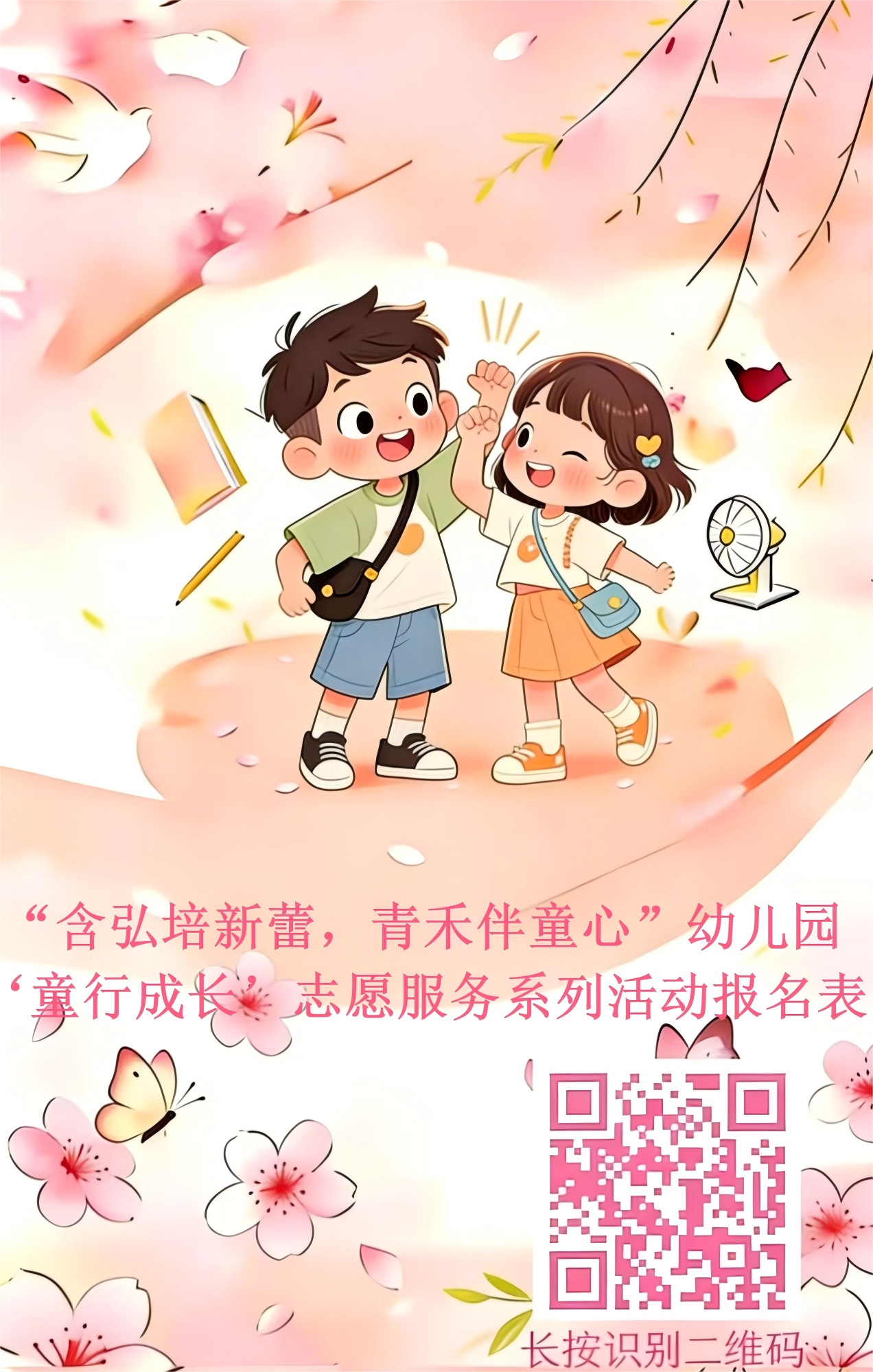 为深入落实立德树人根本任务,在“五育并举”与“科学保教”的政策指引下,响应学前教育政策与区域发展需求,依托西南大学实验幼儿园荣昌园优质平台,聚焦户外教育支持与分龄主题实践,现决定举办西南大学“西小青”志愿服务工程——青禾行动之“含弘培新蕾,青禾伴童心”幼儿园童行成长志愿服务系列活动。现将有关事项通知如下: