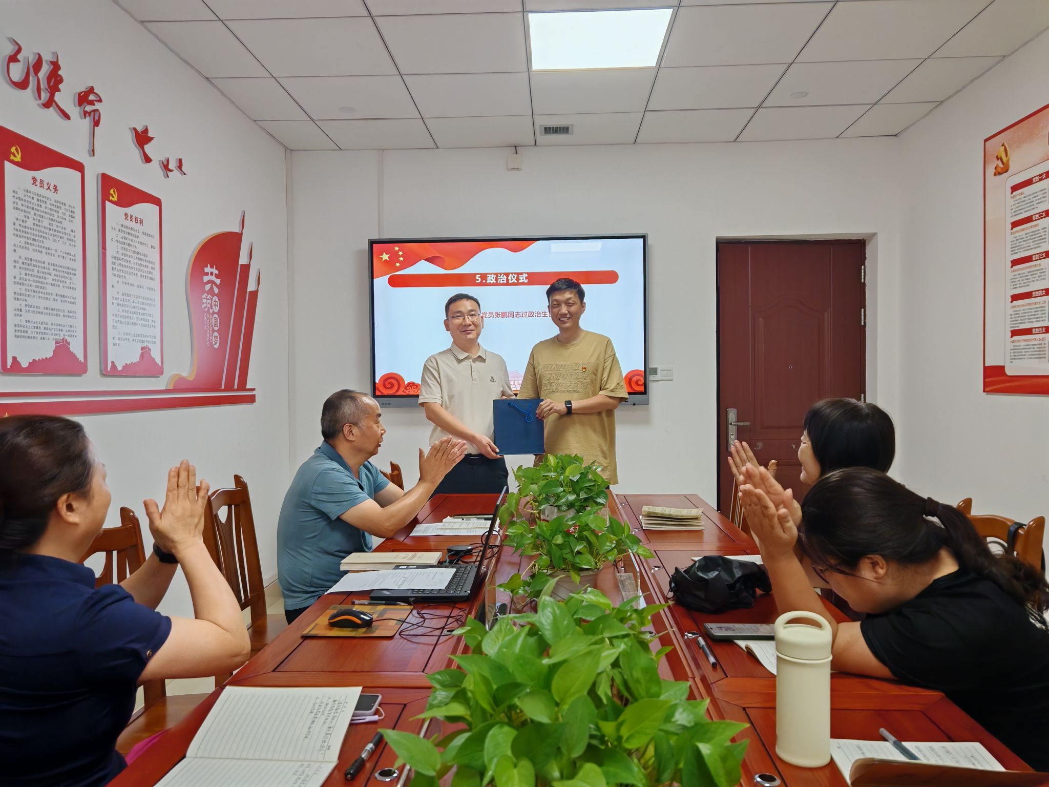 政治仪式环节,为支部党员张鹏同志过政治生日,赠送礼物。张鹏同志发表感言,感谢组织关怀,表示将保持初心,用好“礼物”,更好地为广大师生服务。通过政治生日,支部形成了“一个党员过政治生日,全体党员接受熏陶”的学习氛围。
