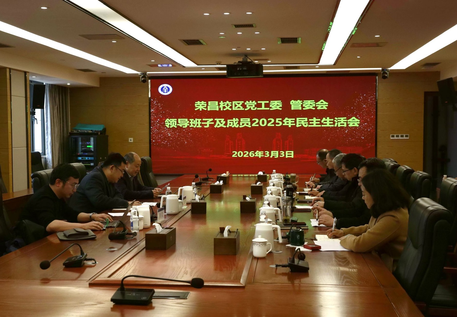 3月3日下午,荣昌校区党工委 管委会领导班子及成员2025年度民主生活会在7A804会议室召开。学校督导组潘玉锋、刘星到会指导。荣昌校区综合办公室主任杨德生列席会议。会议由校区党工委书记周国安主持。