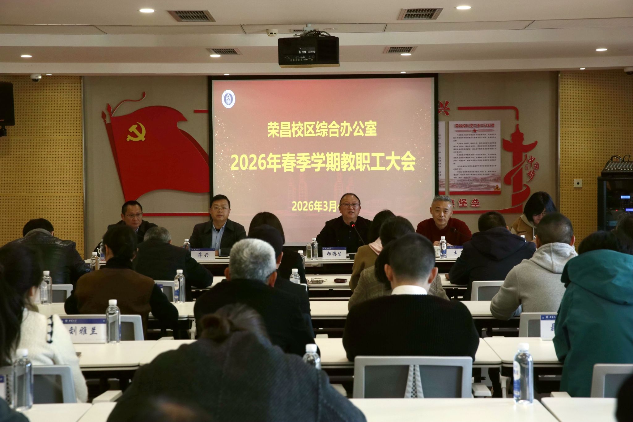 为统一思想、明确任务,3月4日下午,荣昌校区综合办公室召开2026年春季学期教职工大会,综合办全体教职工参加会议,综合办公室主任杨德生主持会议。