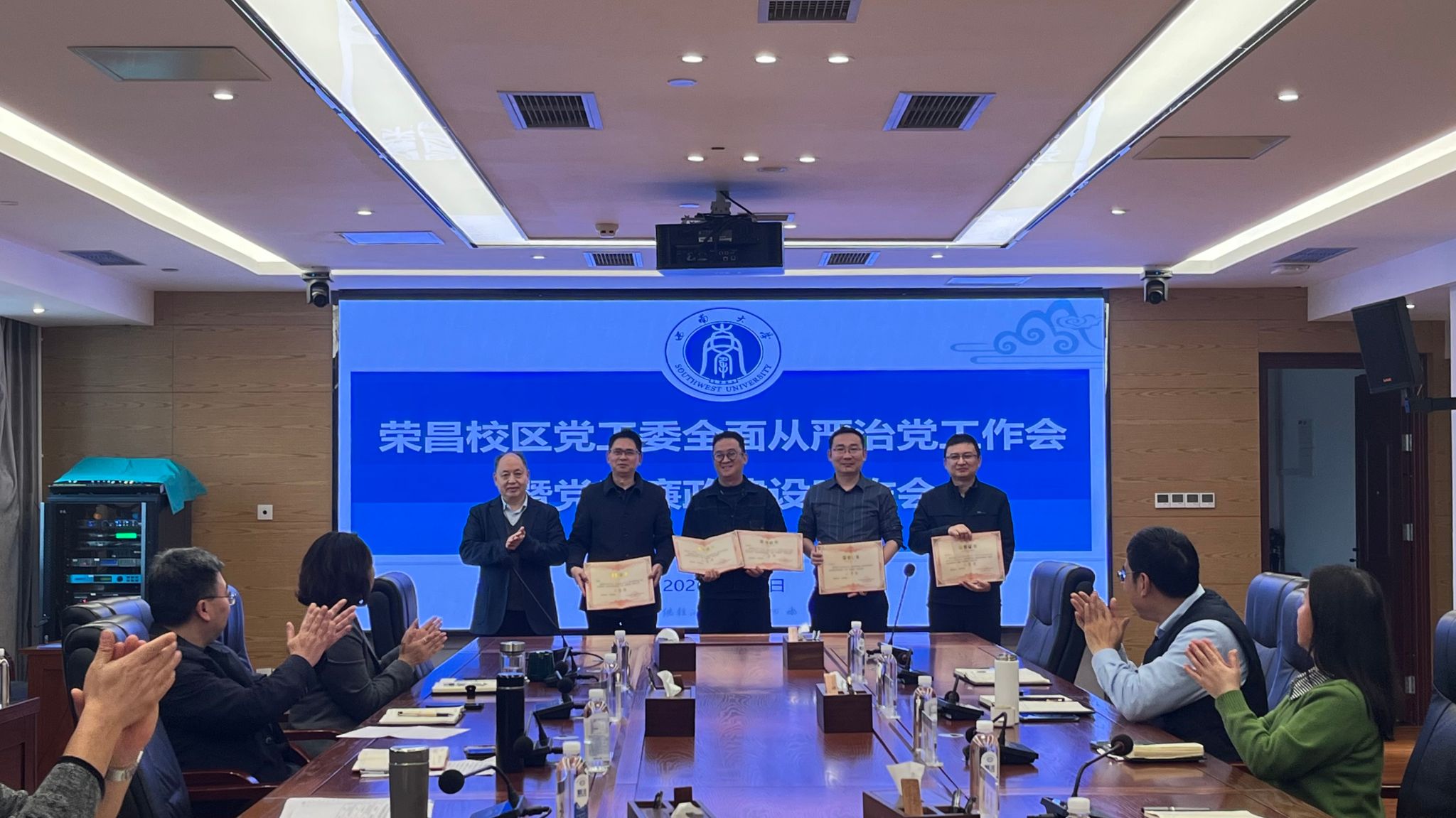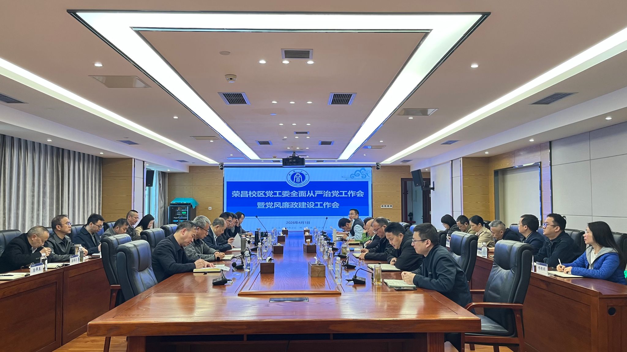 4月1日上午,荣昌校区党工委召开2026年全面从严治党工作会暨党风廉政建设工作会。荣昌校区党工委、管委会领导班子及各内设管理服务机构负责人,校区机关党总支书记及各党支部书记,校区党工委、管委会全体科级干部,校区机关党总支、离退休党委、各党支部纪检委员等参加会议。会议由副处级组织员包尔泉主持。