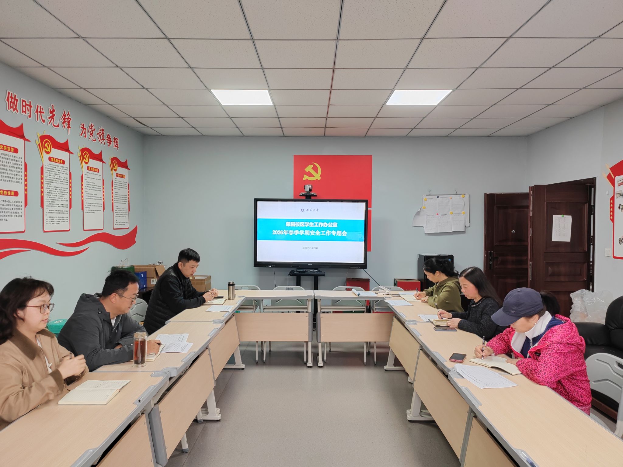 为切实强化校园安全管理,全面排查并消除各类安全隐患,4月7日上午,荣昌校区学生工作办公室组织召开2026年春季学期安全工作专题会议。会议围绕新学期校园安全形势及潜在风险展开深入分析与全面梳理。与会人员结合工作实际,重点针对学生聚集场所、公共活动空间、消防设施、用电安全及应急处置机制等关键环节,开展了系统排查与风险研判。会议明确指出,校园安全是学生工作的底线红线,必须时刻保持高度警惕,坚持“预防为主、防治结合”的原则,将安全责任精准落实到岗、明确到人、全面压实。